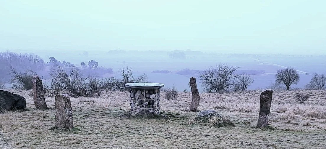 Am 21.12.2025 haben wir die letzten Sonnensteine rund um den Toposkop platziert und mit Glühwein und guter Sicht pünktlich zur Wintersonnen-wende der Öffentlichkeit übergeben.