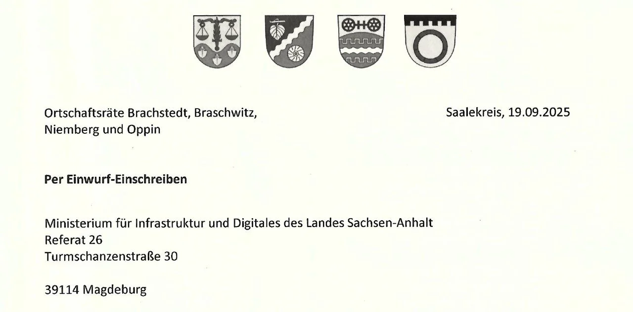 vollständiges Anschreiben und Stellungnahme zum Landesentwicklungsplan der Ortschaftsräte Brachstedt, Braschwitz/Plößnitz, Niemberg und Oppin