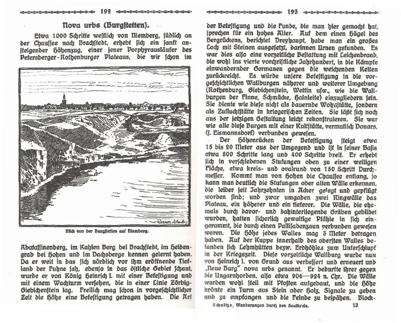 Eine interessante historische Darstellung des Burgstetten durch Dr. Baron von Schultze-Gallera aus dem Jahre 1921 im Buch “Wanderungen durch den Saal-Kreis.”